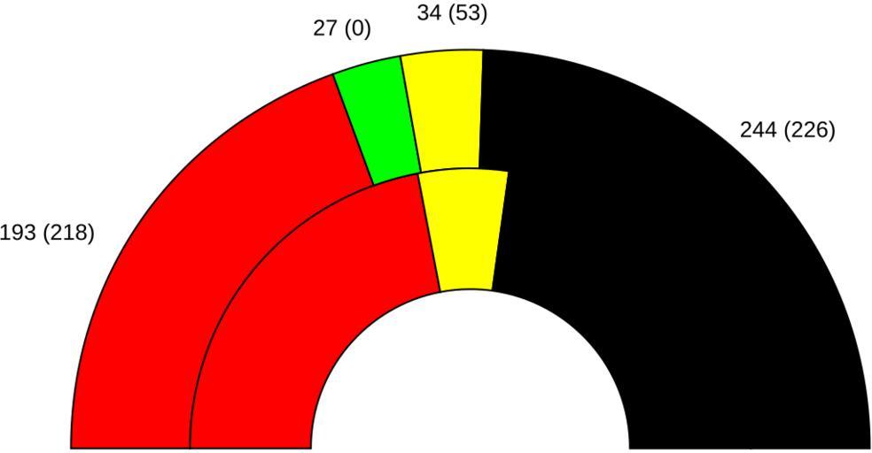 Keywords: 1983 federal german result.svg German election results seat chart SDP in red Green in green FDP in yellow CDU/CSU in black From English Wikipedia; en User Willhsmit 2007-03-19 Traced by User Stannered Other fields + Diagrams Bundestag elections Election apportionment diagrams of German Bundestag |