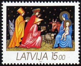 Keywords: 19921121 15rub Latvia Postage Stamp.jpg en Postage stamp issued by Latvia 1992 depicting Christmas scene Scan of postage stamp from own collection Philaweb 2009-11-22 PD-LV-exempt stamps <gallery> File 19921121 2rub Latvia Postage Stamp jpg File 19921121 3rub Latvia Postage Stamp jpg File 19921121 10rub Latvia Postage Stamp jpg </gallery> Stamps of Latvia 1992 Christmas on stamps of Latvia Christmas 1992 in Latvia Adoration of the Magi on stamps Donkeys on stamps Sheep on stamps Cattle on stamps Animals on stamps of Latvia |