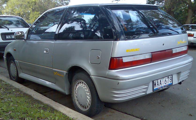 Keywords: 1998-1999 Suzuki Swift X-Treme Cino 3-door hatchback 01.jpg 1998 “1999 Suzuki Swift X-Treme Cino 3-door hatchback photographed in Gymea New South Wales Australia 2009-07-13 Own OSX Released into the public domain OSX Suzuki Swift 1988 Silver Suzuki hatchbacks Photographs by OSX |