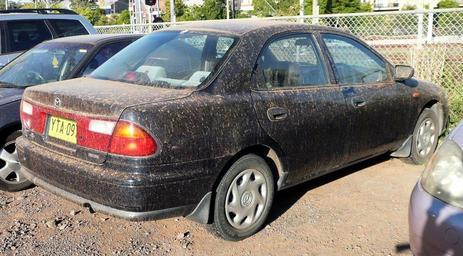 Keywords: 1998 Mazda 323 (BA Series 3) Protegé 1.6 sedan (2009-09-25).jpg 1998 w Mazda 323 BA Series 3 Protegé 1 6 sedan The hubcaps are from the 2001 “2003 Mazda 323 BJ Series 2 Photographed at Sutherland New South Wales Australia two days after the 2009 09 23 2009 Australian dust storm Sydney dust storm 2009-09-25 own OSX OSX Photographs by OSX Mazda 323 BH Black Mazda sedans 2009 Australian dust storm |