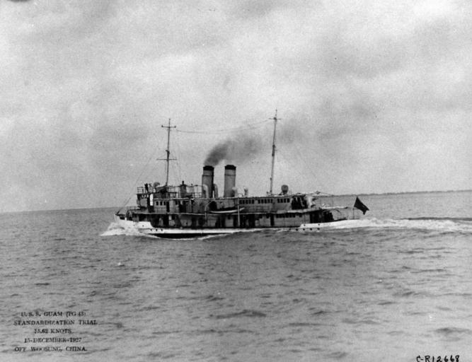 | Keywords: blackandwhite monochrome outdoor boat vehicle black and white 19-LC-14-32: USS Guam (PG 43), standardization trial 15.62 knots, off Woosung, China, December 15, 1927. In June 1928, she was reclassified as a River Gunboat (PR-3). In 1941, Guam was renamed Wake. On 8 December of that year, she surrendered to Japanese forces at Shanghai, China. Renamed HIJNS Tatara, she was recovered by the U.S. after the war and transferred to China in 1946 under the name RCS Tai Yuan. She was captured by Communist China in 1949 and her fate remains unknown. (6/16/2015). 19-LC-14-32: USS Guam (PG 43), standardization trial 15.62 knots, off Woosung, China, December 15, 1927. In June 1928, she was reclassified as a River Gunboat (PR-3). In 1941, Guam was renamed Wake. On 8 December of that year, she surrendered to Japanese forces at Shanghai, China. Renamed HIJNS Tatara, she was recovered by the U.S. after the war and transferred to China in 1946 under the name RCS Tai Yuan. She was captured by Communist China in 1949 and her fate remains unknown. (6/16/2015). |