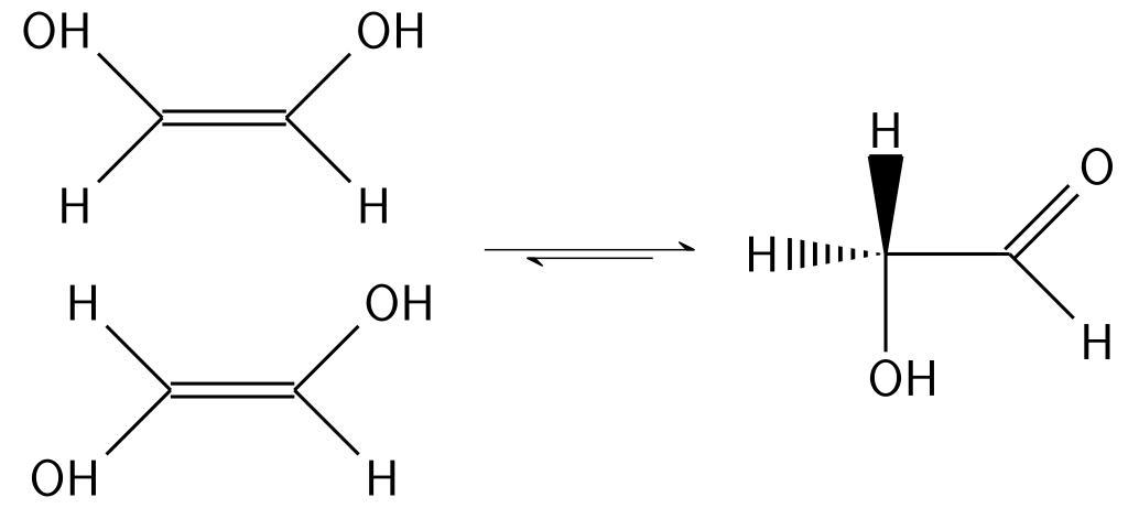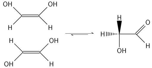 Keywords: 1,2-ethenodiol-ethanoic hydroxyethanal.svg tautomery reaction own Krishnavedala 2014-08-01 validSVG LaTeX source code <syntaxhighlight lang latex > \documentclass12pt border 3pt standalone \usepackageT1 fontenc \usepackageutf8 inputenc \usepackage chemfig chemmacros \usepackage lmodern \usetikzlibrary decorations pathmorphing \chemsetupchemformula font-shape sf format \sffamily \renewcommand \printatom1 \ensuremath \mathsf 1 \setatomsep 2 5em \setdoublesep 6ex \setarrowdefault 1 25 \setbondstyle thick \begin document \schemestart \subscheme \chemfig OH-7 -5H -7H -1OH \arrow 0 -90 25 \chemfig H-7 -5OH -7H -1OH \arrow <->> \chemfig H> <2H -6OH - 1O -7H \schemestop \end document </syntaxhighlight> cob Tautomerism Glycolaldehyde Cc-zero |