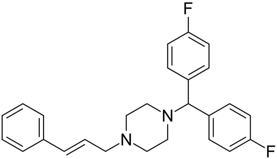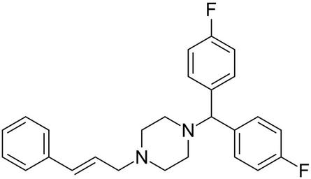 Keywords: 1-(bis(4-fluorophenyl)methyl)-4-cinnamylpiperazine 200.svg validSVG Structure of 1- bis 4-fluorophenyl methyl -4-cinnamylpiperazine Own 2014-06-08 Emeldir <span class signature-talk ></span> Chemical structure verified https //upload wikimedia org/wikipedia/commons/1/14/1- 28bis 284-fluorophenyl 29methyl 29-4-cinnamylpiperazine_200 svg 1S/C26H26F2N2/c27-24-12-8-22 9-13-24 26 23-10-14-25 28 15-11-23 30-19-17-29 18-20-30 16-4-7-21-5-2-1-3-6-21/h1-15 26H 16-20H2/b7-4+ SMANXXCATUTDDT-QPJJXVBHSA-N 52468-60-7 Synonyms <small> E -1-bis 4-fluorophenyl methyl-4- 3-phenyl-2-propenyl piperazine E -1-Bis- p-fluorophenyl methyl-4-cinnamylpiperazine 1- Bis 4-fluorophenyl methyl -4-cinnamylpiperazine 1-Bis 4-fluorophenyl methyl-4- 3-phenyl-2-propenyl piperazine 1-Bis- 4-fluoro-phenyl -methyl-4- E -3-phenyl-allyl -piperazine 4' 4-Difluorocinnarizine trans-1-Cinnamyl-4- 4 4'-difluorobenzhydryl piperazine dihydrochloride Flunaritsiinidihydrokloridi Flunarizin-dihydrochlorid Flunarizina Flunarizina hidrocloruro de Flunarizindihydroklorid Flunarizine Flunarizine Hydrochloride Flunarizine dichlorhydrate de Flunarizini Dihydrochloridum Flunarizino dihidrochloridas Flunarizinum R-14950 Sibelium</small> PD-chem Flunarizine |