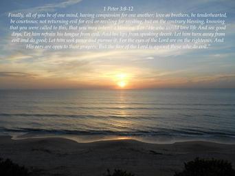 Keywords: god jesus jesus christ jesuschrist god the father godthefather holy spirit holyspirit holy church scripture angels faith prayer pray hope peace love alive forevermore aliveforevermore angel christian righteous king of kings kingofkings heaven archangel god is love godislove prince of peace princeofpeace creator christ the creator christthecreator god the creator godthecreator third heaven thirdheaven awesome alpha and omega alphaandomega wonderful glorious omnipotent almighty bible holy bible holybible armor of god armorofgod glorify hallelujah judgment judgment day judgmentday usa united states of america unitedstatesofamerica sleep christ who strengthens me christwhostrengthensme word of god wordofgod word of god stands forever wordofgodstandsforever shine like stars shinelikestars the lord is my shepherd thelordismyshepherd eternity confess christ confesschrist confess repent repentance humble sinner humble yourself humbleyourself saved lost found salvation praise god praisegod amen word became flesh wordbecameflesh be strong bestrong courage spiritual warfare spiritualwarfare spiritual warfare seaside ocean shore outdoor water landscape beach sky coast sand sunset sea cloud wave New King James Version (NKJV) Called to Blessing Finally, all of you be of one mind, having compassion for one another; love as brothers, be tenderhearted, be courteous; not returning evil for evil or reviling for reviling, but on the contrary blessing, knowing that you were called to this, that you may inherit a blessing. For “He who would love life And see good days, Let him refrain his tongue from evil, And his lips from speaking deceit. Let him turn away from evil and do good; Let him seek peace and pursue it. For the eyes of the Lord are on the righteous, And His ears are open to their prayers; But the face of the Lord is against those who do evil.” Romans 8:28 New King James Version (NKJV) And we know that all things work together for good to those who love God, to those who are the called according to His purpose. New King James Version (NKJV) Called to Blessing Finally, all of you be of one mind, having compassion for one another; love as brothers, be tenderhearted, be courteous; not returning evil for evil or reviling for reviling, but on the contrary blessing, knowing that you were called to this, that you may inherit a blessing. For “He who would love life And see good days, Let him refrain his tongue from evil, And his lips from speaking deceit. Let him turn away from evil and do good; Let him seek peace and pursue it. For the eyes of the Lord are on the righteous, And His ears are open to their prayers; But the face of the Lord is against those who do evil.” Romans 8:28 New King James Version (NKJV) And we know that all things work together for good to those who love God, to those who are the called according to His purpose. |