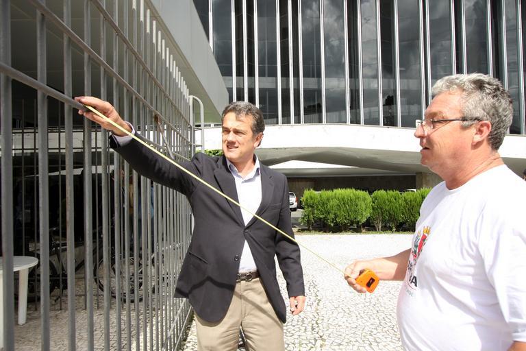 Keywords: people outdoor O presidente da Assembleia Legislativa, deputado Valdir Rossoni (PSDB), e o 1º secretário da Mesa Diretora, deputado Plauto Miro (DEM), discutiram nesta quinta-feira (dia 17) com técnicos da Prefeitura Municipal de Curitiba a remoção das grades metálicas que circundam a Praça Nossa Senhora da Salete, liberando novamente o acesso da população ao logradouro público. Leia mais no site www.alep.pr.gov.br. Foto: Nani Gois / Assembleia Legislativa do Paraná O presidente da Assembleia Legislativa, deputado Valdir Rossoni (PSDB), e o 1º secretário da Mesa Diretora, deputado Plauto Miro (DEM), discutiram nesta quinta-feira (dia 17) com técnicos da Prefeitura Municipal de Curitiba a remoção das grades metálicas que circundam a Praça Nossa Senhora da Salete, liberando novamente o acesso da população ao logradouro público. Leia mais no site www.alep.pr.gov.br. Foto: Nani Gois / Assembleia Legislativa do Paraná |