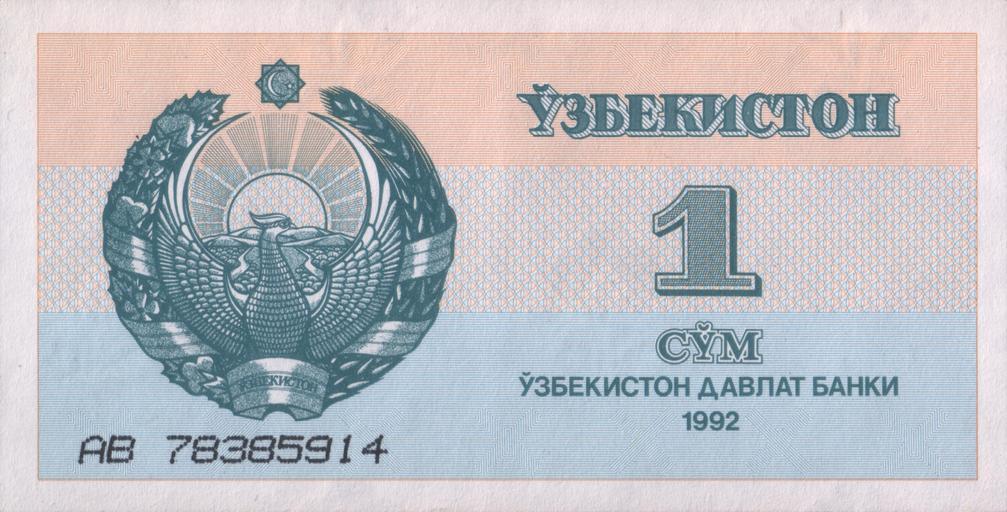 | Keywords: 1 som. Uzbekistan, 1992 a.jpg 1 сум Узбекистана 1992 1 sum of Uzbekistan 1992 own scan 1992 Central Bank of the Republic of Uzbekistan Цент альный банк Республики Узбекистан Ўзбекистон Республикаси а казий банки PD-UZ-exempt banknotes Banknotes of Uzbekistan 1992 Banknotes with a face value of 1 Coats of arms of Uzbekistan on banknotes |