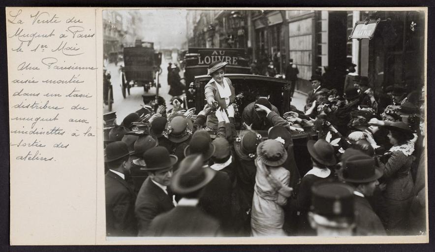 Keywords: photo border La vente du muguet à Paris le 1er mai. Une parisienne aisée montée dans un taxi, distribue du muguet aux midinettes à la sortie des ateliers. La vente du muguet à Paris le 1er mai. Une parisienne aisée montée dans un taxi, distribue du muguet aux midinettes à la sortie des ateliers. |