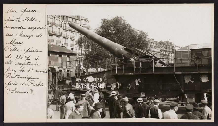 Keywords: railroad gun railroadgun railway gun railwaygun artillery cannon photo border outdoor Un canon de 280 mm allemand a été capturé par la 4ème armée britannique près de Corbie. Un canon de 280 mm allemand a été capturé par la 4ème armée britannique près de Corbie. |