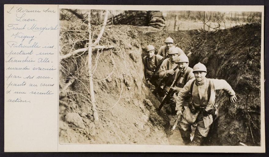 Keywords: bleu soldier soldiers french army frencharmy the great war thegreatwar great war greatwar world war one worldwarone world war i worldwari wwi first world war firstworldwar armée de terre arméedeterre armee de terre armeedeterre people photo border L'avance sur Laon. Front Margival Trégny. Patrouille inspectant une tranchée allemande évacuée par ses occupants. L'avance sur Laon. Front Margival Trégny. Patrouille inspectant une tranchée allemande évacuée par ses occupants. |