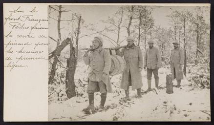 Keywords: bleu french army frencharmy the great war thegreatwar great war greatwar world war one worldwarone world war i worldwari wwi first world war firstworldwar armée de terre arméedeterre armee de terre armeedeterre wine wine barrel winebarrel barrel snow photo border drawing sketch Front français. Poilus à la corvée de vin. Front français. Poilus à la corvée de vin. |