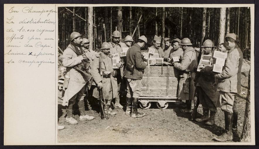 Keywords: bleu french army frencharmy the great war thegreatwar great war greatwar world war one worldwarone world war i worldwari wwi first world war firstworldwar armée de terre arméedeterre armee de terre armeedeterre cigars cigar photo border En Champagne. La distribution de 10 000 cigares offerts par un ami du capitaine pour sa compagnie. En Champagne. La distribution de 10 000 cigares offerts par un ami du capitaine pour sa compagnie. |