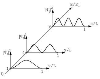 Keywords: 1D Probability Density with Energies.svg Diagram showing the probability densities of the first 3 energy states in a 1D quantum well of width L Own Drawings done in Inkscape 12/02/07 inductiveload image 1D_Wavefunctions_with_Energies svg Diagram showing the wavefunctions of the first 3 energy states in a 1D quantum well of width L 1D infinite square wells |