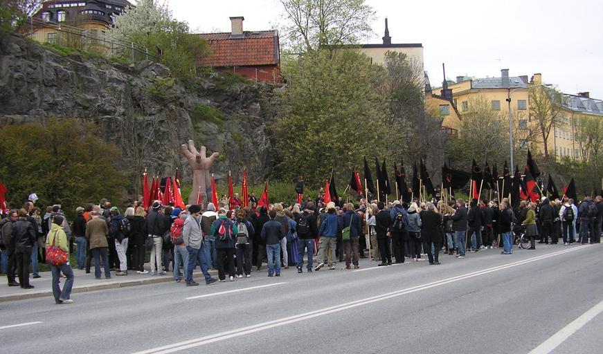 Keywords: 1maj2007-LaMano.jpg Anarchist demo in front of La Mano in Stockholm Sweden on May 1 2007 Own 2007-05-01 Liftarn 2007 in Södermalm May 2007 in Sweden 1st of May in Stockholm Anarchism in Sweden La mano sculpture Files by Liftarn Katarinavägen Monuments and memorials in Stockholm La Mano Photographs of anarchist flags