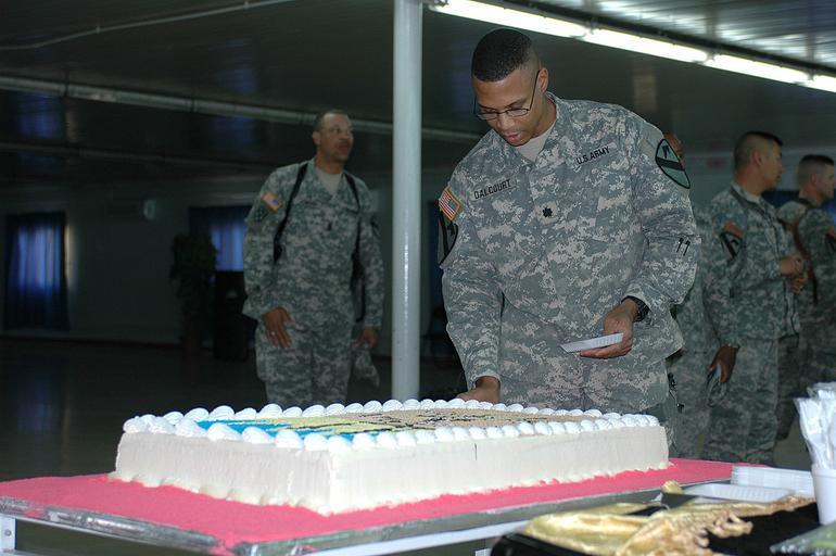 Keywords: 1st ACB Observes Black History Month DVIDS36451.jpg en Cake and finger foods were had by the Soldiers of the 1st Air Cavalry Brigade 1st Cavalry Division after the Black History Month program at Camp Taji Iraq Feb 15 The keynote speaker Baton Rouge La native Lt Col Charles Dalcourt Jr the deputy brigade commander had the honor of cutting the first piece 2004-12-31 Sgt 1st Class Rick Emert https //www dvidshub net/image/36451 36451 2007-02-19 10 39 TAJI IQ PD-USGov Black History Month at Fort Hood Texas Camp Taji Black History Month Images from DoD uploaded by Fæ |