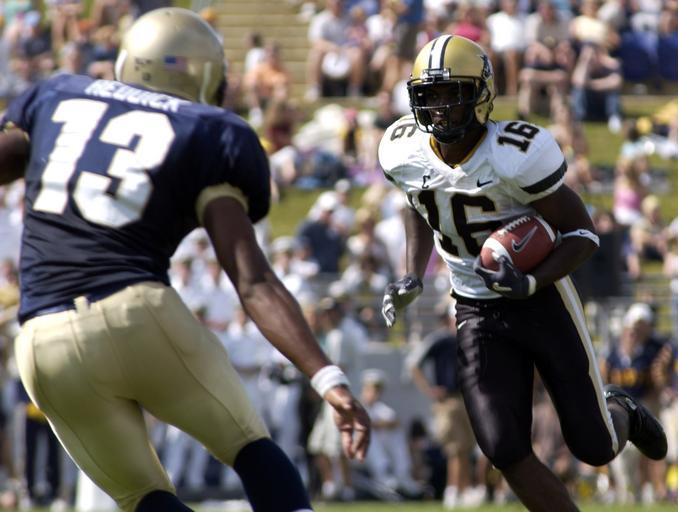 Keywords: 2004 Vanderbilt-Navy Game.jpg Vanderbilt wide receiver Chris Young attempts to evade U S Naval Academy Midshipman 3rd Class Hunter Reddick http //www navy mil/view_image asp id 17834 2004-09-25 Journalist 2nd Class Brandan W Schulze PD-USGov-Military-Navy College football |