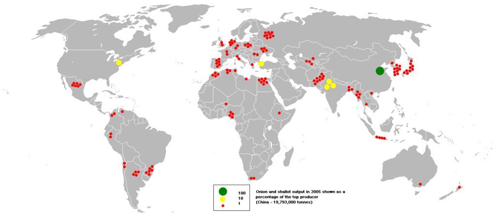 Keywords: 2005onion and shallot.PNG This bubble map shows the global distribution of onion and shallot output in 2005 as a percentage of the top producer China - 19 793 000 tonnes This map is consistent with incomplete set of data too as long as the top producer is known It resolves the accessibility issues faced by colour-coded maps that may not be properly rendered in old computer screens Data was extracted on 11th June 2007 from http //faostat fao org/site/336/DesktopDefault aspx PageID 336 Based on en Image BlankMap-World png en wikipedia 2007-06-11 Anwar saadat wikipedia en economic map Anwar saadat original upload log page en wikipedia 2005onion_and_shallot PNG 2007-06-11 16 04 Anwar saadat 1425×625×8 62405 bytes <nowiki></nowiki> Agricultural maps of the world Allium cepa Aggregatum Group Allium cepa Onions Bubble maps |