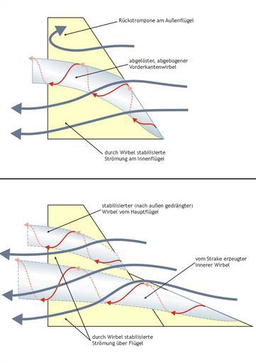 Keywords: 20061120 Strake Strömung.jpg Strömung am Strake- Hybrid -Flügel Das obere Bild stellt den abgelösten Vorderkantenwirbel am normalen Flügel ohne Strake dar Das untere Bild stellt das Strömungssystem aus beiden Wirbeln am Strakeflügel dar Der äußere Wirbel wird stabilisiert und liegt im äußeren Bereich des Flügels 2006-11-20 own assumed Schillrich Lift-induced vortices Strakes |