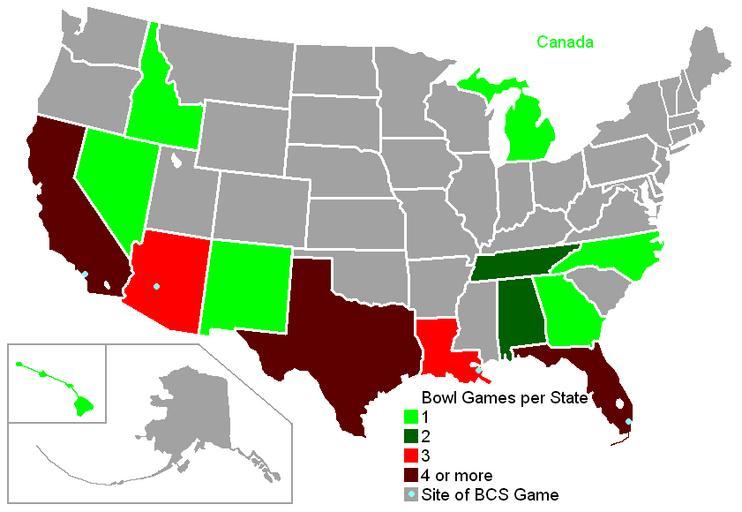 Keywords: 2006 Bowls-USA-states.PNG derived from http //en wikipedia org/wiki/Image BlankMap-USA-states jpg; map of states with 2006-07 NCAA football bowl games schools and their division I don't know how to edit the map but I assume that someone will notice this comment Louisiana has 4 bowls this year The New Orleans the Independence the Sugar and the BCS National Championship game 2008 And Arizona only has two Fiesta and Insight Response The map is based on 2006 when the national title game was played in Arizona rather than Louisiana Transferred from http //en wikipedia org en wikipedia; transferred to Commons by User Quadell using http //tools wikimedia de/~magnus/commonshelper php CommonsHelper 2007-05-24 Original uploader was Porsche997SBS at http //en wikipedia org en wikipedia Later version s were uploaded by Reorion Pepperjack Falcorian at http //en wikipedia org en wikipedia Released into the public domain by the author en wikipedia Porsche997SBS original upload log page en wikipedia 2006_Bowls-USA-states PNG 2007-05-24 19 50 Porsche997SBS 841×580× 32356 bytes <nowiki>no city confusion</nowiki> 2007-04-25 22 12 Porsche997SBS 841×580× 32380 bytes <nowiki>dots easier to see</nowiki> 2007-03-11 03 28 Reorion 841×580× 32384 bytes <nowiki>Reverted to earlier revision</nowiki> 2007-03-11 03 28 Reorion 841×580× 32364 bytes <nowiki>Reverted to earlier revision</nowiki> 2007-03-11 03 27 Reorion 841×580× 32364 bytes <nowiki>Reverted to earlier revision</nowiki> 2007-03-11 03 26 Reorion 841×580× 32364 bytes <nowiki>Reverted to earlier revision</nowiki> 2007-03-11 02 19 Porsche997SBS 841×580× 32384 bytes <nowiki>Reverted to earlier revision</nowiki> 2007-02-19 03 54 Reorion 841×580× 32364 bytes <nowiki>Reverted to earlier revision</nowiki> 2007-01-12 02 01 Porsche997SBS 841×580× 32384 bytes <nowiki></nowiki> 2006-12-15 19 27 Pepperjack 841×580× 32364 bytes <nowiki>Reverted to earlier revision</nowiki> 2006-12-03 23 05 Porsche997SBS 841×580× 16583 bytes <nowiki>Reverted to earlier revision</nowiki> 2006-12-03 23 04 Porsche997SBS 841×580× 32364 bytes <nowiki>Reverted to earlier revision</nowiki> 2006-11-11 22 49 Falcorian 841×580× 16583 bytes <nowiki>Lossless compression </nowiki> 2006-10-29 16 48 Porsche997SBS 841×580× 32364 bytes <nowiki>derived from http //en wikipedia org/wiki/Image BlankMap-USA-states PNG; map of states with 2006-07 NCAA football bowl games schools and their division </nowiki> 2006 NCAA Division I FBS football season Sports competitions College football NCAA football bowl maps |