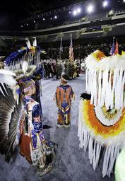 | Keywords: smithsonian institution smithsonianinstitution native american children tradition culture powwow native american nativeamerican ceremony headdress photo color native american boys nativeamericanboys boys in costume boysincostume costumes childern stadium national museum of the american indian nationalmuseumoftheamericanindian Description: Powwows are large social gatherings of Native Americans who follow traditional dances started centuries ago by their ancestors, and which continually evolve to include contemporary aspects. These events of drum music, dancing, singing, artistry and food, are attended by Natives and non-Natives, all of whom join in the dancing and take advantage of the opportunity to see old friends and teach the traditional ways to a younger generation. During the National Powwow, the audience see dancers in full regalia compete in several dance categories, including Men and Women's Golden Age (ages 50 and older); Men's Fancy Dance, Grass and Traditional (Northern and Southern); Women's Jingle Dress, Fancy Shawl, and Traditional (Northern and Southern); Teens (13-17); Juniors (6-12) and Tiny Tots (ages 5 and younger). The drum groups are the heart of all powwows and provide the pulsating and thunderous beats that accompany a dancer's every movement. The powwow is led by three "host drums" that showcase three distinct styles of singing (Northern, Southern and contemporary) and represent the best examples of each style. The drum contest highlights groups of 10 to 12 members each, and they sing traditional family songs that are passed down orally from one generation to the next. The National Museum of the American Indian sponsored the National Powwow in 2002, 2005, and 2007 as a way of presenting to the public the diversity and social traditions of contemporary Native cultures. Creator/Photographer: Ken Rahaim Medium: Digital photograph Culture: American Indian Geography: USA Date: 2007 Repository: National Museum of the American Indian Accession number: 07natl-powwow_0119 Description: Powwows are large social gatherings of Native Americans who follow traditional dances started centuries ago by their ancestors, and which continually evolve to include contemporary aspects. These events of drum music, dancing, singing, artistry and food, are attended by Natives and non-Natives, all of whom join in the dancing and take advantage of the opportunity to see old friends and teach the traditional ways to a younger generation. During the National Powwow, the audience see dancers in full regalia compete in several dance categories, including Men and Women's Golden Age (ages 50 and older); Men's Fancy Dance, Grass and Traditional (Northern and Southern); Women's Jingle Dress, Fancy Shawl, and Traditional (Northern and Southern); Teens (13-17); Juniors (6-12) and Tiny Tots (ages 5 and younger). The drum groups are the heart of all powwows and provide the pulsating and thunderous beats that accompany a dancer's every movement. The powwow is led by three "host drums" that showcase three distinct styles of singing (Northern, Southern and contemporary) and represent the best examples of each style. The drum contest highlights groups of 10 to 12 members each, and they sing traditional family songs that are passed down orally from one generation to the next. The National Museum of the American Indian sponsored the National Powwow in 2002, 2005, and 2007 as a way of presenting to the public the diversity and social traditions of contemporary Native cultures. Creator/Photographer: Ken Rahaim Medium: Digital photograph Culture: American Indian Geography: USA Date: 2007 Repository: National Museum of the American Indian Accession number: 07natl-powwow_0119 |