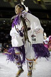 | Keywords: smithsonian institution smithsonianinstitution native youth in ceremonial powwow. nativeyouthinceremonialpowwow native american dance competition dancer nativeamericandancecompetitiondancer native american nativeamerican young woman youngwoman dance competition dancecompetition shawl dancer shawldancer regalia american indian americanindian leather costume leathercostume indianbeadwork indian tribal feather dan national museum of the american indian nationalmuseumoftheamericanindian outdoor costume Description: Powwows are large social gatherings of Native Americans who follow traditional dances started centuries ago by their ancestors, and which continually evolve to include contemporary aspects. These events of drum music, dancing, singing, artistry and food, are attended by Natives and non-Natives, all of whom join in the dancing and take advantage of the opportunity to see old friends and teach the traditional ways to a younger generation. During the National Powwow, the audience see dancers in full regalia compete in several dance categories, including Men and Women's Golden Age (ages 50 and older); Men's Fancy Dance, Grass and Traditional (Northern and Southern); Women's Jingle Dress, Fancy Shawl, and Traditional (Northern and Southern); Teens (13-17); Juniors (6-12) and Tiny Tots (ages 5 and younger). The drum groups are the heart of all powwows and provide the pulsating and thunderous beats that accompany a dancer's every movement. The powwow is led by three "host drums" that showcase three distinct styles of singing (Northern, Southern and contemporary) and represent the best examples of each style. The drum contest highlights groups of 10 to 12 members each, and they sing traditional family songs that are passed down orally from one generation to the next. The National Museum of the American Indian sponsored the National Powwow in 2002, 2005, and 2007 as a way of presenting to the public the diversity and social traditions of contemporary Native cultures. Creator/Photographer: Ken Rahaim Medium: Digital photograph Culture: American Indian Geography: USA Date: 2007 Repository: National Museum of the American Indian Accession number: 07natl-powwow_0618 Description: Powwows are large social gatherings of Native Americans who follow traditional dances started centuries ago by their ancestors, and which continually evolve to include contemporary aspects. These events of drum music, dancing, singing, artistry and food, are attended by Natives and non-Natives, all of whom join in the dancing and take advantage of the opportunity to see old friends and teach the traditional ways to a younger generation. During the National Powwow, the audience see dancers in full regalia compete in several dance categories, including Men and Women's Golden Age (ages 50 and older); Men's Fancy Dance, Grass and Traditional (Northern and Southern); Women's Jingle Dress, Fancy Shawl, and Traditional (Northern and Southern); Teens (13-17); Juniors (6-12) and Tiny Tots (ages 5 and younger). The drum groups are the heart of all powwows and provide the pulsating and thunderous beats that accompany a dancer's every movement. The powwow is led by three "host drums" that showcase three distinct styles of singing (Northern, Southern and contemporary) and represent the best examples of each style. The drum contest highlights groups of 10 to 12 members each, and they sing traditional family songs that are passed down orally from one generation to the next. The National Museum of the American Indian sponsored the National Powwow in 2002, 2005, and 2007 as a way of presenting to the public the diversity and social traditions of contemporary Native cultures. Creator/Photographer: Ken Rahaim Medium: Digital photograph Culture: American Indian Geography: USA Date: 2007 Repository: National Museum of the American Indian Accession number: 07natl-powwow_0618 |