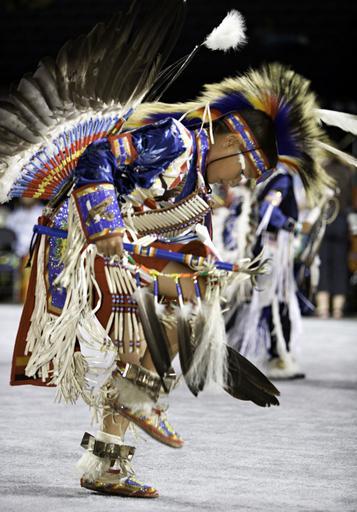 | Keywords: smithsonian institution smithsonianinstitution native american nativeamerican boy costume dance powwow gathering young mens fancy dance youngmensfancydance head dress headdress bustle feather bustle featherbustle blue red young men youngmen compition native feathers moccasin national museum of the american indian nationalmuseumoftheamericanindian not a costume notacostume Description: Powwows are large social gatherings of Native Americans who follow traditional dances started centuries ago by their ancestors, and which continually evolve to include contemporary aspects. These events of drum music, dancing, singing, artistry and food, are attended by Natives and non-Natives, all of whom join in the dancing and take advantage of the opportunity to see old friends and teach the traditional ways to a younger generation. During the National Powwow, the audience see dancers in full regalia compete in several dance categories, including Men and Women's Golden Age (ages 50 and older); Men's Fancy Dance, Grass and Traditional (Northern and Southern); Women's Jingle Dress, Fancy Shawl, and Traditional (Northern and Southern); Teens (13-17); Juniors (6-12) and Tiny Tots (ages 5 and younger). The drum groups are the heart of all powwows and provide the pulsating and thunderous beats that accompany a dancer's every movement. The powwow is led by three "host drums" that showcase three distinct styles of singing (Northern, Southern and contemporary) and represent the best examples of each style. The drum contest highlights groups of 10 to 12 members each, and they sing traditional family songs that are passed down orally from one generation to the next. The National Museum of the American Indian sponsored the National Powwow in 2002, 2005, and 2007 as a way of presenting to the public the diversity and social traditions of contemporary Native cultures. Creator/Photographer: Ken Rahaim Medium: Digital photograph Culture: American Indian Geography: USA Date: 2007 Repository: National Museum of the American Indian Accession number: 07natl-powwow_0303 Description: Powwows are large social gatherings of Native Americans who follow traditional dances started centuries ago by their ancestors, and which continually evolve to include contemporary aspects. These events of drum music, dancing, singing, artistry and food, are attended by Natives and non-Natives, all of whom join in the dancing and take advantage of the opportunity to see old friends and teach the traditional ways to a younger generation. During the National Powwow, the audience see dancers in full regalia compete in several dance categories, including Men and Women's Golden Age (ages 50 and older); Men's Fancy Dance, Grass and Traditional (Northern and Southern); Women's Jingle Dress, Fancy Shawl, and Traditional (Northern and Southern); Teens (13-17); Juniors (6-12) and Tiny Tots (ages 5 and younger). The drum groups are the heart of all powwows and provide the pulsating and thunderous beats that accompany a dancer's every movement. The powwow is led by three "host drums" that showcase three distinct styles of singing (Northern, Southern and contemporary) and represent the best examples of each style. The drum contest highlights groups of 10 to 12 members each, and they sing traditional family songs that are passed down orally from one generation to the next. The National Museum of the American Indian sponsored the National Powwow in 2002, 2005, and 2007 as a way of presenting to the public the diversity and social traditions of contemporary Native cultures. Creator/Photographer: Ken Rahaim Medium: Digital photograph Culture: American Indian Geography: USA Date: 2007 Repository: National Museum of the American Indian Accession number: 07natl-powwow_0303 |