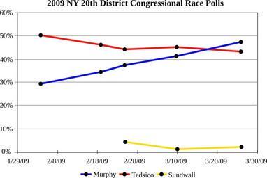 Keywords: 2009 NY 20th District Congressional Race Polls.svg 2009 special election for the 20th congressional district of New York between Scott Murphy D James Tedisco R and Eric Sundwall L Polls taken by Public Opinion Strategies http //www politico com/blogs/scorecard/0209/Republican_holds_early_lead_for_Gillibrand_seat html February 3 “4 2009 Siena Research Institute http //staging siena edu/uploadedFiles/Home/Parents_and_Community/Community_Page/SRI/SNY_Poll/20th 20CD 20SNY 20Poll 20Release 20-- 20Final pdf February 18 “19 http //www siena edu/uploadedFiles/Home/Parents_and_Community/Community_Page/SRI/SNY_Poll/20th 20CD 20SNY 20Poll 202 20Release 20-- 20final_2 pdf March 9 “10 and http //staging siena edu/uploadedFiles/Home/Parents_and_Community/Community_Page/SRI/SNY_Poll/20th 20CD 20SNY 20Poll 203 20Release 20-- 20FINAL pdf March 25 “26 2009 and Benenson Strategy Group http //www politico com/news/stories/0309/19881 html February 24 “25 2009 own ; based on File NY20thDistrict2009PollChart png 2009-04-29 ZooFari Based on File NY20thDistrict2009PollChart png made by Wadester16 User ZooFari/Template SVG United States House of Representatives 2009 in New York Politics of New York |