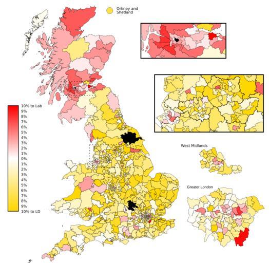 Keywords: 2010UKElectionLabLDSwing.svg Labour to Liberal Democrat swing in Great Britain in the 2010 general election own Wereon Parliament of the United Kingdom 2010 UK General election