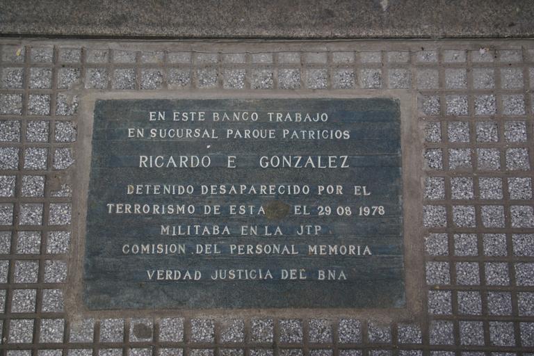 Keywords: 2011.10.17.092703 Political sign Calle Reconquista Buenos Aires.jpg -34 607078030042 -58 372222780009 44 en At the branch Parque Patricios of this bank worked Ricardo E González disappeared prisoner by the terrorism of this on 29 08 1978 He was engaged at the JTP Personnel Commission Memorial Truth Justice of the BNA - Political sign on Calle Reconquista San Nicolás Buenos Aires Argentina 2011-10-17 own Hermann Luyken cc-zero Uploaded with UploadWizard Calle Reconquista Buenos Aires Political banners and signs in Argentina |