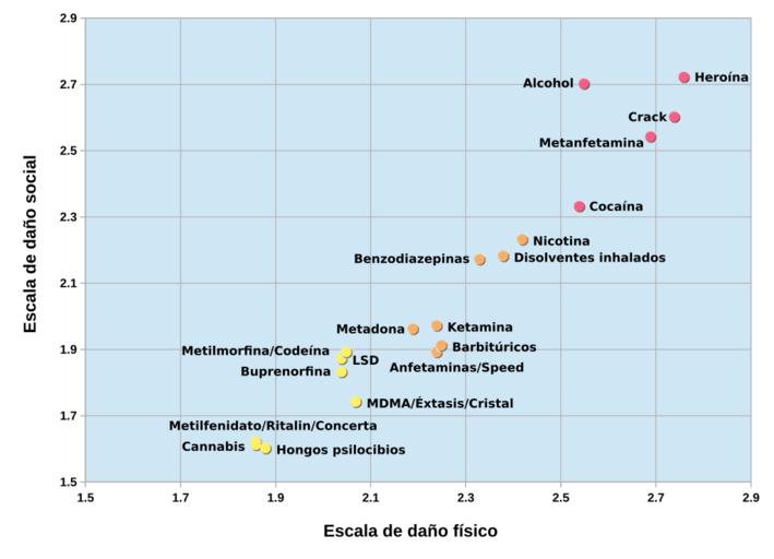 Keywords: 2011 Drug Harms Rankings es.svg es Traducción de la imagen original en inglés de Wikimedia Commons Gráfico que muestra el ránking de daño tanto a nivel físico personal como social de las 19 drogas recreativas más comunes Los datos responden a un encuesta de 2011 entre 292 expertos clínicos realizada en Escocia El daño físico personal está en el eje X y el daño social en el eje Y Los datos se toman de http //bmjopen bmj com/content/2/4/e000774/T3 expansion html bmjopen bmj com/content/2/4/e000774/T3 expansion html el cual tiene su correspondiente artículo en la revista http //bmjopen bmj com/content/2/4/e000774 full html T1 bmjopen bmj com/content/2/4/e000774 full html 2016-10-03 English original file Wikimedia Commons The RedBurn / Own work translation other versions <gallery> 2011 Drug Harms Rankings svg Original file language en 2011 Drug Harms Rankings png PNG version 2011 Drug Harms Rankings fr svg language fr 2011 Drug Harms Rankings rus svg language ru </gallery> cc-zero Psychoactive drugs harm diagrams and charts SVG health Graphics |
