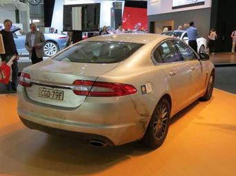 Keywords: 2012 Jaguar XF (X250 MY12) Luxury sedan (2012-10-26) 02.jpg 2012 Jaguar XF X250 MY12 Luxury sedan photographed at the 2012 Australian International Motor Show Sydney New South Wales Australia <br /><br />The framed document on the windshield is a certificate from the Australian Book of Records awarded to the Jaguar XF 2 2 Diesel team for setting a New Australian Record ¦ while driving a Jaguar XF 2 2 Diesel for the lowest fuel consumption diesel automatic in the under 3 litre category circumnavigating Australia covered 13 925 km ™s achieving 3 98 L/100 km between 24 September to 19 October 2012 2012-10-26 Own OSX -33 875839 151 200012 OSX Jaguar XF X250 Saloon Silver sedans Jaguar at the 2012 Australian International Motor Show Photographs by OSX