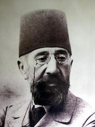 Keywords: 20131205 Istanbul 097.jpg Osman Hamdi Bey before 1911 original photograph<br/> 2013 12 05 photograph by Mark Ashman own Mark Ahsmann PD-old 2013 in Istanbul Beards in Turkey Black and white photographic portraits Istanbul Archaeological Museums Males with glasses Males with hats Photographs of Osman Hamdi Bey Uploaded with UploadWizard