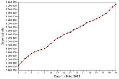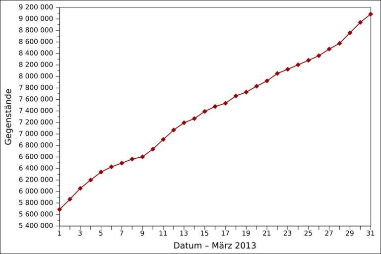 Keywords: 2013-03 Wikidata items DE.svg de Grafische Darstellung des vollständigen Anzahls der angelegten Gegenstände auf Wikidata in März 2013 auf Deutsch Löschungen werden nicht berücksichtigt en Graph presenting the total number of items created on Wikidata as of March 2013 in German Item deletions are not taken into account fr Graphique en allemand représentant le nombre total d'éléments créés sur Wikidata en mars 2013 Les suppressions d'éléments ne sont pas prises en compte 2013-04-01 21 27 own Ljubinka cc-zero en yes File 2013-03 Wikidata items EN svg fr yes File 2013-03 Wikidata items FR svg Wikidata statistics in March 2013 Wikidata statistics in German |
