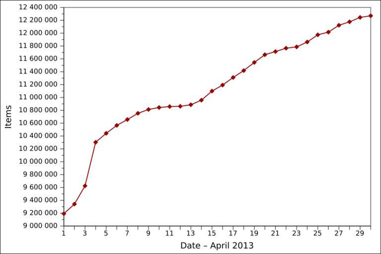 Keywords: 2013-04 Wikidata items EN.svg de Grafische Darstellung des vollständigen Anzahls der angelegten Gegenstände auf Wikidata in April 2013 auf Englisch Löschungen werden nicht berücksichtigt en Graph presenting the total number of items created on Wikidata as of April 2013 in English Item deletions are not taken into account fr Graphique en anglais représentant le nombre total d'éléments créés sur Wikidata en avril 2013 Les suppressions d'éléments ne sont pas prises en compte 2013-05-04 13 44 own Ljubinka cc-zero File 2013-04 Wikidata items DE svg File 2013-04 Wikidata items FR svg Wikidata statistics in April 2013 Wikidata statistics in English |