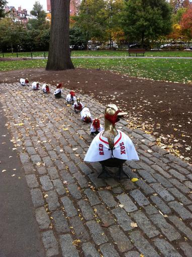 Keywords: 2013 Boston Public Garden ducklings Red Sox fans 25 October.jpg Duckling sculptures costumed as Red Sox baseball fans Boston Public Garden Massachusetts USA own 2013-10-25 M2545 42 21 33 0 N 71 4 17 0 W alt 18 072187_source exif_heading 74 739174 Boston Public Garden 2013 in Boston Boston Red Sox