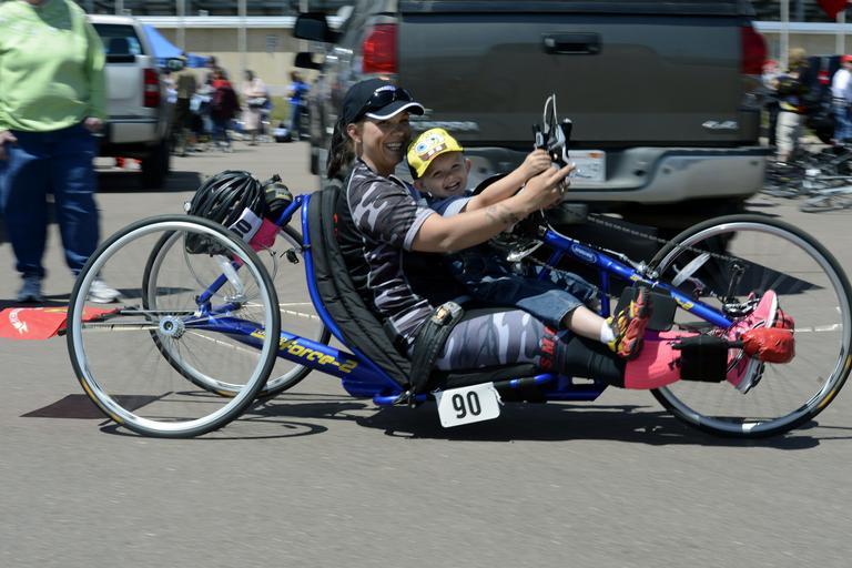Keywords: 2013 Warrior Games 130512-D-DB155-003.jpg en Marine Cpl Breanna Dill gives her son Landon 3 a ride on her recumbent bike before competing in the 2013 Warrior Games cycling competition near the U S Air Force Academy Stadium in Colorado Springs Colo May 12 From May 11-16 more than 200 wounded ill and injured servicemembers and veterans from the U S Marines Army Air Force and Navy as well as a team representing U S Special Operations Command and a team from the United Kingdom will compete for the gold in track and field shooting archery swimming cycling wheelchair basketball and sitting volleyball at the U S Olympic Training Center and U S Air Force Academy The military service with the most medals will win the Commander's Cup 2013-05-12 EJ Hersom https //www dvidshub net/image/929877 130512-D-DB155-003 2013-05-12 20 56 COLORADO SPRINGS CO US PD-USGov U S Olympic Training Center Images from DoD uploaded by Fæ |