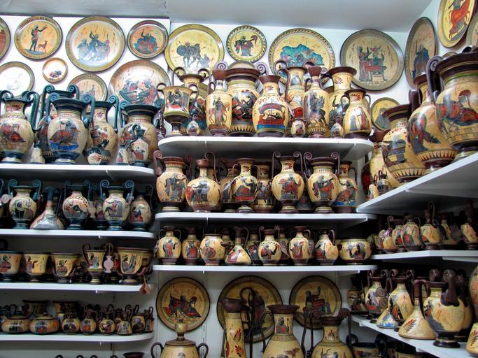 Keywords: Corfu city public shop ancient object indoor nopeople greece creativecommons repetition pottery corfu kerkyra vak grc liston corfucity cc0 coeluc vak201505corfu