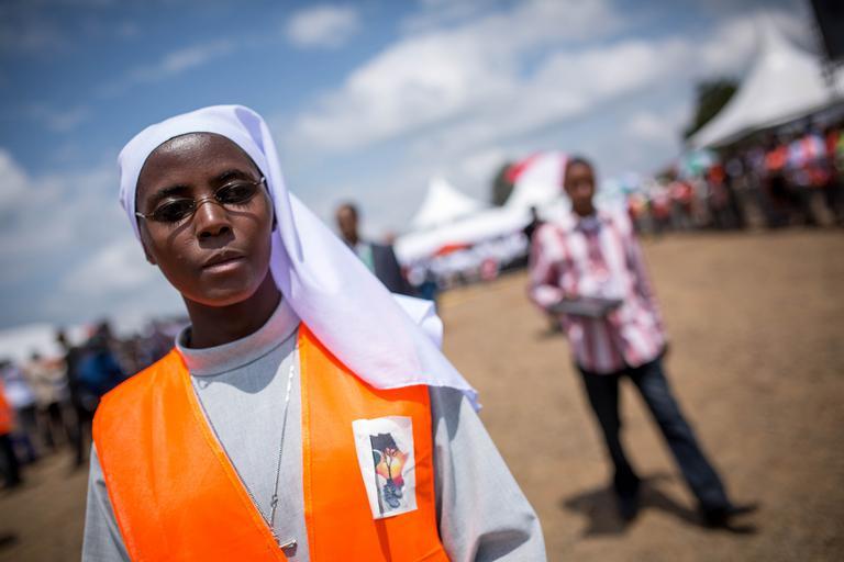 | Keywords: kenya nyeri africa roman catholic italy nun sister irene stefani nyaatha mathari gikoni sainthood missionary world war one beatification ceremony soldiers wounded tourism christian nuns faith religion people outdoor KENYA, Nyeri: In a photograph taken 23 May 2015, and made available by Make It Kenya, a nun stands in her role as a stewrad during a ceremony to mark he beatification of Sister Irene Stefani, an Italian nun and missionary who is beloved in Nyeri and its environs for her selfless service to wounded World War One soldiers and ailing locals alike. Thousands of Catholic faithful, clery, government officials, residents and visitors gathered in the Kenyan town of Nyeri today, 23 May, to witness Africa’s first beatification ceremony for Sister Stefani, who was known as Aurelia Jacoba Mercede until she joined the Consolata Missionary Sisters and changed her name in 1911. She arrived in Nyeri in 1915 and gained fame over the years for her genorosity and extraordinary empathy for the sick, wounded and aged. She died in 1930 at the age of 39, after contracting plague from infected patients that she insisted on treating. Catholic authorities say that reports of her kindness and a miracle attributed to her intercession, moved Pope Francis to approve preparations for her beatification in 2014. MANDATORY CREDIT: MAKE IT KENYA PHOTO / STUART PRICE. KENYA, Nyeri: In a photograph taken 23 May 2015, and made available by Make It Kenya, a nun stands in her role as a stewrad during a ceremony to mark he beatification of Sister Irene Stefani, an Italian nun and missionary who is beloved in Nyeri and its environs for her selfless service to wounded World War One soldiers and ailing locals alike. Thousands of Catholic faithful, clery, government officials, residents and visitors gathered in the Kenyan town of Nyeri today, 23 May, to witness Africa’s first beatification ceremony for Sister Stefani, who was known as Aurelia Jacoba Mercede until she joined the Consolata Missionary Sisters and changed her name in 1911. She arrived in Nyeri in 1915 and gained fame over the years for her genorosity and extraordinary empathy for the sick, wounded and aged. She died in 1930 at the age of 39, after contracting plague from infected patients that she insisted on treating. Catholic authorities say that reports of her kindness and a miracle attributed to her intercession, moved Pope Francis to approve preparations for her beatification in 2014. MANDATORY CREDIT: MAKE IT KENYA PHOTO / STUART PRICE. |
