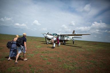 Keywords: kenya maasai mara national reserve ol kinyei porini gamewatchers wildlife management nature conservation environment conservancy employment community guide tracker tourism tourists safari holiday outdoor KENYA, Ol Kinyei, Maasai Mara: In a photograph taken by Make It Kenya 14 June 2015, toursits make their way to a Safarilink light aircraft in the Ol Kinyei Conservancy in Kenya's Maasai Mara. The management of Ol Kinyei and similar conservancies bordering the Maasai Mara National Reserve and in other areas of Kenya is an alternative approach to wildlife conservation. The land on which the conservancies are located is leased from local communities who directly benefit from its use to naturally host and protect wildlife populations. The privately owned and managed conservancies also offer employment to members of these communities and further opportunity of training in different areas of expertise from guides and trackers to chefs and camp management. Strict regulation of visitor numbers and the construction of camps inside the conservancies also limit the amount of people and vehicles present at any given time, offering tourists a much more personal and exclusive wildlife safari experience while at the same time reducing stress on and the disturbance of wildlife populations, which quickly begin to return and repopulate areas and land transformed under the conservancy model. MANDATORY CREDIT: MAKE IT KENYA PHOTO / STUART PRICE. KENYA, Ol Kinyei, Maasai Mara: In a photograph taken by Make It Kenya 14 June 2015, toursits make their way to a Safarilink light aircraft in the Ol Kinyei Conservancy in Kenya's Maasai Mara. The management of Ol Kinyei and similar conservancies bordering the Maasai Mara National Reserve and in other areas of Kenya is an alternative approach to wildlife conservation. The land on which the conservancies are located is leased from local communities who directly benefit from its use to naturally host and protect wildlife populations. The privately owned and managed conservancies also offer employment to members of these communities and further opportunity of training in different areas of expertise from guides and trackers to chefs and camp management. Strict regulation of visitor numbers and the construction of camps inside the conservancies also limit the amount of people and vehicles present at any given time, offering tourists a much more personal and exclusive wildlife safari experience while at the same time reducing stress on and the disturbance of wildlife populations, which quickly begin to return and repopulate areas and land transformed under the conservancy model. MANDATORY CREDIT: MAKE IT KENYA PHOTO / STUART PRICE.
