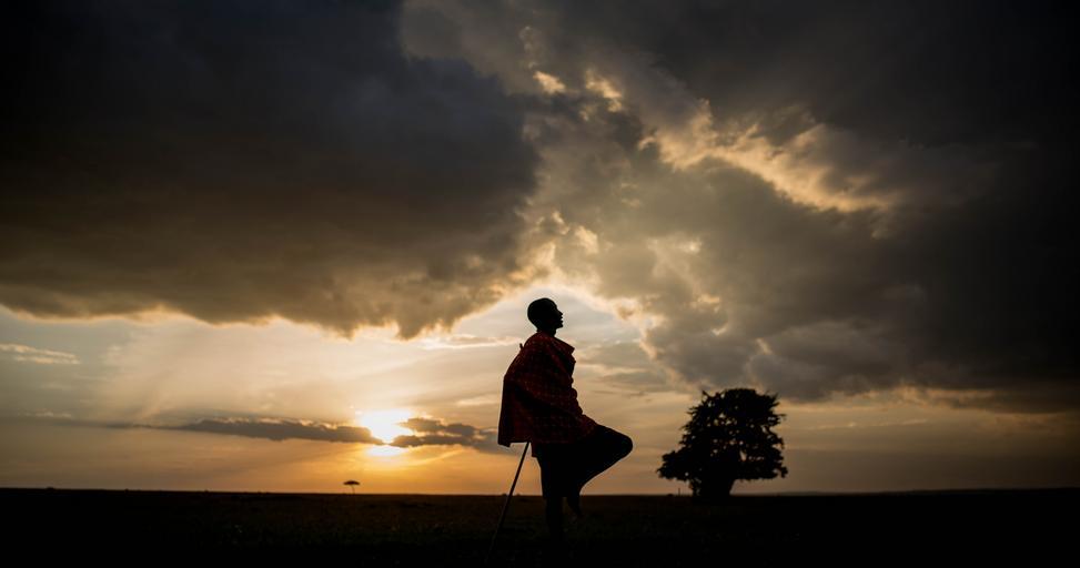 Keywords: kenya travel tourism culture tradition maasai mara national reserve north conservancy wildlife conservation walking village manyatta traditional contemporary lifestyles modern world 21st century change development outdoor sky cloud KENYA, Maasai Mara: In a photograph taken by Make It Kenya 23 June 2015, Josphat Mako, Maasai guide and companion to author and travel writer Stuart Butler stands as the sun begins to set over the Mara North Conservancy adjacent to Kenya's world famous Maasai Mara National Reserve. Throughout the months of May and June, Stuart and Mako walked over 200km across traditional lands belonging to Kenya's Maasai. Embarking from the high, remote and forested Loita Hills they headed west, skirting the edge of the world famous Maasai Mara National Reserve, passing through private and community conservancies before finishing at the foot of the Oloololo Escarpment. During the expedition, Stuart and Mako visited numerous Maasai villages known as manyattas spending time with both past and present generations of Maasai people, learning about their traditional cultures and contemporary Maasai lifestyles, and the pressure of the modern world and the 21st Century, conservation, political pressures and tourism, all of which influence and contribute to Maasai life today. MANDATORY CREDIT: MAKE IT KENYA PHOTO / STUART PRICE. KENYA, Maasai Mara: In a photograph taken by Make It Kenya 23 June 2015, Josphat Mako, Maasai guide and companion to author and travel writer Stuart Butler stands as the sun begins to set over the Mara North Conservancy adjacent to Kenya's world famous Maasai Mara National Reserve. Throughout the months of May and June, Stuart and Mako walked over 200km across traditional lands belonging to Kenya's Maasai. Embarking from the high, remote and forested Loita Hills they headed west, skirting the edge of the world famous Maasai Mara National Reserve, passing through private and community conservancies before finishing at the foot of the Oloololo Escarpment. During the expedition, Stuart and Mako visited numerous Maasai villages known as manyattas spending time with both past and present generations of Maasai people, learning about their traditional cultures and contemporary Maasai lifestyles, and the pressure of the modern world and the 21st Century, conservation, political pressures and tourism, all of which influence and contribute to Maasai life today. MANDATORY CREDIT: MAKE IT KENYA PHOTO / STUART PRICE.