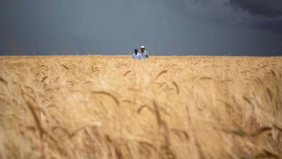 | Keywords: kenya agriculture economy business trade commerce local market export farming employment barley crop roses flowers timber harvest landscape field dune KENYA, Timau: In a photograph taken by Make It Kenya 26 July 2015, farmer Charlie Dyer (right) of Kisima Farm walks with a farm worker through a field of barley in Timau, Meru County, central Kenya, approx. 250km north of the capital Nairobi. MANDATORY CREDIT: MAKE IT KENYA PHOTO / STUART PRICE. KENYA, Timau: In a photograph taken by Make It Kenya 26 July 2015, farmer Charlie Dyer (right) of Kisima Farm walks with a farm worker through a field of barley in Timau, Meru County, central Kenya, approx. 250km north of the capital Nairobi. MANDATORY CREDIT: MAKE IT KENYA PHOTO / STUART PRICE. |