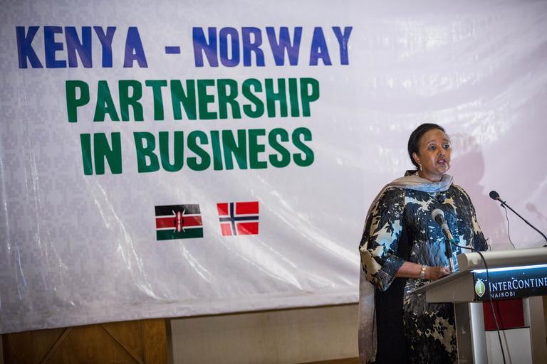 Keywords: norway kenya business partnership nairobi trade investment relations development public private sector ceos companies KENYA, Nairobi: In a photograph taken by Make It Kenya 18 September 2015, Dr. Amina Mohamed, Cabinet Secretary for The Kenyan Ministry of Foreign Affairs and International Trade speaks at the opening of the Kenya-Norway Partnership in Business Seminar at the InterContinental Hotel in the Kenyan capital Nairobi. The seminar saw Norway's Minister of Trade & Industry Ms. Monica Maelend lead a delegation of over 50 Norwegian CEOs and business representatives to Kenya to meet a series of high profile public and private sector companies in a move designed as a major development in Kenya-Norway investment relations. MAKE IT KENYA PHOTO / STUART PRICE. KENYA, Nairobi: In a photograph taken by Make It Kenya 18 September 2015, Dr. Amina Mohamed, Cabinet Secretary for The Kenyan Ministry of Foreign Affairs and International Trade speaks at the opening of the Kenya-Norway Partnership in Business Seminar at the InterContinental Hotel in the Kenyan capital Nairobi. The seminar saw Norway's Minister of Trade & Industry Ms. Monica Maelend lead a delegation of over 50 Norwegian CEOs and business representatives to Kenya to meet a series of high profile public and private sector companies in a move designed as a major development in Kenya-Norway investment relations. MAKE IT KENYA PHOTO / STUART PRICE. |