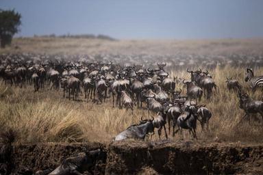 MAKE A MEME View Large Image Masai Mara: In a photograph taken by Make It Kenya 29 September 2015, a large group of wildebeest break into a run as having just crossed the Mara River in Kenya's world famous Masai Mara National Reserve. Every year, hundreds of thousands ...