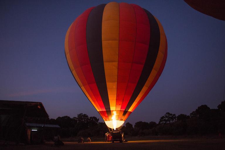 | Keywords: KENYA, Masai Mara: In a photograph taken by Make It Kenya 30 September 2015, people watch a gas is flared into a Governor's Balloon Safari hot air balloon in preparation for a flight over the Masai Mara National Reserve. Seeing the Mara from the air requires an early start in order to be airborne for the sunrise, but offers tourists visiting the famous wildlife reserve a unique and panoramic way to view one of Kenya's most famous natural attractions from the basket of a hot air balloon. MANDATORY CREDIT: MAKE IT KENYA PHOTO / STUART PRICE. KENYA, Masai Mara: In a photograph taken by Make It Kenya 30 September 2015, people watch a gas is flared into a Governor's Balloon Safari hot air balloon in preparation for a flight over the Masai Mara National Reserve. Seeing the Mara from the air requires an early start in order to be airborne for the sunrise, but offers tourists visiting the famous wildlife reserve a unique and panoramic way to view one of Kenya's most famous natural attractions from the basket of a hot air balloon. MANDATORY CREDIT: MAKE IT KENYA PHOTO / STUART PRICE. |