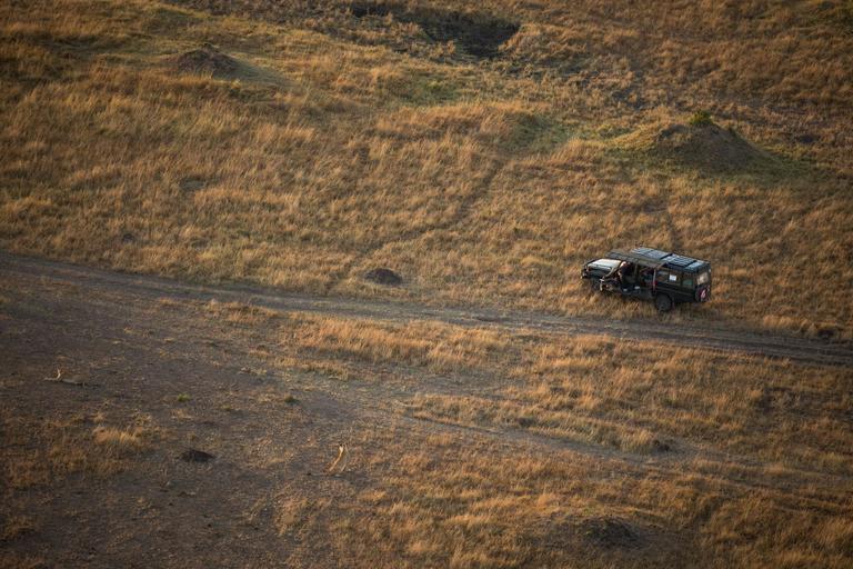 MAKE A MEME View Large Image Masai Mara: In a photograph taken by Make It Kenya 02 October 2015, a safari vehicle watches two lions shortly after sunrise as a Governor's Balloon Safari floats over the Masai Mara National Reserve. Seeing the Mara from the air requires ...