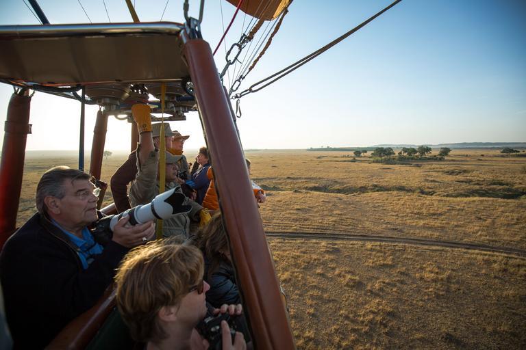 MAKE A MEME View Large Image Masai Mara: In a photograph taken by Make It Kenya 02 October 2015, tourists take photographs and look out from the basket of a Governor's Balloon Safari hot air balloon as it floats along the course of the Mara River just after sunrise. ...