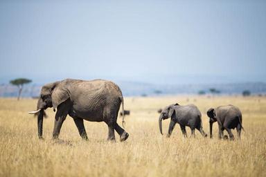 Keywords: animal outdoor elephant landscape field grassland KENYA, Masai Mara: In a photograph taken by Make It Kenya 03 October 2015, a female elephant leads away two young elephants who were hitherto sparring with each other on the savannah in the Mara Triangle, part of Kenya's wider Masai Mara ecosystem. During the months of July through to October, one of nature's greatest events takes place in the Mara when hundreds of thousands of wildebeest, zebra and other ungulates migrate northwards from Tanzania's Serengeti in search of fresh pasture and grazing, before turning and heading south again in a journey that covers thousands of kilometres and is known as one of the seven natural wonders of the world, making it a major draw for wildlife enthusiasts and tourists from around the globe. MANDATORY CREDIT: MAKE IT KENYA PHOTO / STUART PRICE. KENYA, Masai Mara: In a photograph taken by Make It Kenya 03 October 2015, a female elephant leads away two young elephants who were hitherto sparring with each other on the savannah in the Mara Triangle, part of Kenya's wider Masai Mara ecosystem. During the months of July through to October, one of nature's greatest events takes place in the Mara when hundreds of thousands of wildebeest, zebra and other ungulates migrate northwards from Tanzania's Serengeti in search of fresh pasture and grazing, before turning and heading south again in a journey that covers thousands of kilometres and is known as one of the seven natural wonders of the world, making it a major draw for wildlife enthusiasts and tourists from around the globe. MANDATORY CREDIT: MAKE IT KENYA PHOTO / STUART PRICE.