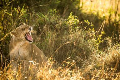 | Keywords: outdoor animal KENYA, Masai Mara: In a photograph taken by Make It Kenya 03 October 2015, a lionesses from the Marsh Pride yawns among grass just after sunrise in the Mara Triangle, part of Kenya's wider Masai Mara ecosystem. During the months of July through to October, one of nature's greatest events takes place in the Mara when hundreds of thousands of wildebeest, zebra and other ungulates migrate northwards from Tanzania's Serengeti in search of fresh pasture and grazing, before turning and heading south again in a journey that covers thousands of kilometres and is known as one of the seven natural wonders of the world, making it a major draw for wildlife enthusiasts and tourists from around the globe. MANDATORY CREDIT: MAKE IT KENYA PHOTO / STUART PRICE. KENYA, Masai Mara: In a photograph taken by Make It Kenya 03 October 2015, a lionesses from the Marsh Pride yawns among grass just after sunrise in the Mara Triangle, part of Kenya's wider Masai Mara ecosystem. During the months of July through to October, one of nature's greatest events takes place in the Mara when hundreds of thousands of wildebeest, zebra and other ungulates migrate northwards from Tanzania's Serengeti in search of fresh pasture and grazing, before turning and heading south again in a journey that covers thousands of kilometres and is known as one of the seven natural wonders of the world, making it a major draw for wildlife enthusiasts and tourists from around the globe. MANDATORY CREDIT: MAKE IT KENYA PHOTO / STUART PRICE. |