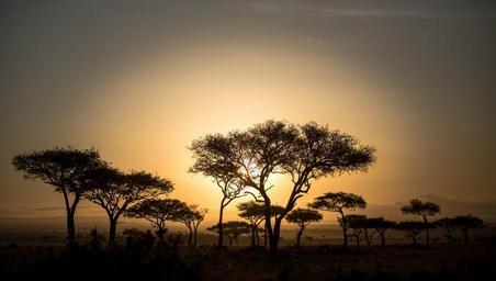 | Keywords: plant tree sunset serene sky outdoor field landscape KENYA, Masai Mara: In a photograph taken by Make It Kenya 04 October 2015, desert date trees are silhouetted against the sun as it rises above the Mara Triangle, part of Kenya's wider Masai Mara ecosystem. Bordering the Masai Mara National Reserve to the north-west, the Mara Triangle is managed by the not-for-profit organisation The Mara Conservancy on behalf of Trans-Mara County Council. Different to the reserve with strict controls on the number of camps, vehicles and visitors, the Mara Triangle offers exceptional game viewing from rhino, elephant, lion, leopard, cheetah, buffalo, wildebeest, zebra and many more ungulates and an abundance of birdlife. During the months of July through to October, one of nature's greatest events takes place in the wider Masai Mara ecosystem when hundreds of thousands of wildebeest, zebra and other ungulates migrate northwards from Tanzania's Serengeti in search of fresh pasture and grazing, before turning and heading south again in a journey that covers thousands of kilometres and is known as one of the seven natural wonders of the world, making it a major draw for wildlife enthusiasts and tourists from around the globe. MANDATORY CREDIT: MAKE IT KENYA PHOTO / STUART PRICE. KENYA, Masai Mara: In a photograph taken by Make It Kenya 04 October 2015, desert date trees are silhouetted against the sun as it rises above the Mara Triangle, part of Kenya's wider Masai Mara ecosystem. Bordering the Masai Mara National Reserve to the north-west, the Mara Triangle is managed by the not-for-profit organisation The Mara Conservancy on behalf of Trans-Mara County Council. Different to the reserve with strict controls on the number of camps, vehicles and visitors, the Mara Triangle offers exceptional game viewing from rhino, elephant, lion, leopard, cheetah, buffalo, wildebeest, zebra and many more ungulates and an abundance of birdlife. During the months of July through to October, one of nature's greatest events takes place in the wider Masai Mara ecosystem when hundreds of thousands of wildebeest, zebra and other ungulates migrate northwards from Tanzania's Serengeti in search of fresh pasture and grazing, before turning and heading south again in a journey that covers thousands of kilometres and is known as one of the seven natural wonders of the world, making it a major draw for wildlife enthusiasts and tourists from around the globe. MANDATORY CREDIT: MAKE IT KENYA PHOTO / STUART PRICE. |