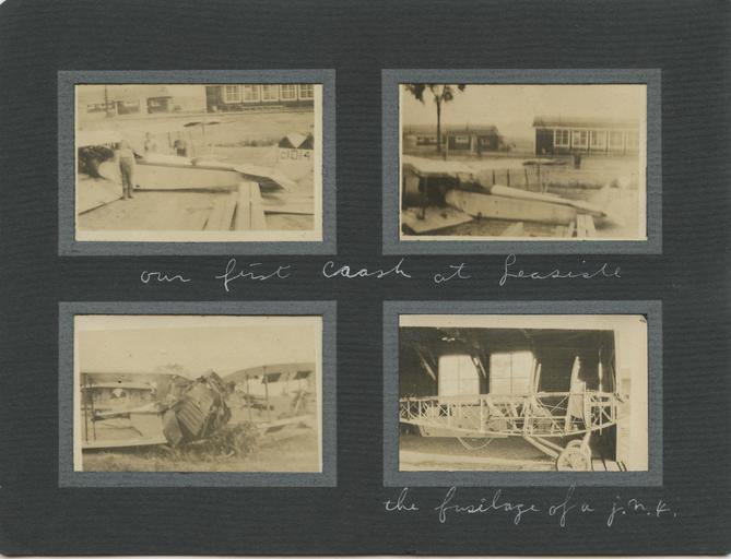 Keywords: 1910s world war i worldwari royal flying corps royalflyingcorps royal air force royalairforce crashes aircraft curtiss jn4 curtissjn4 text "Our first crash at Leaside" "the fusilage [fuselage] of a j.n.4." Photographs taken by Harry McBride (1893-1969), who worked as a rigger in the Royal Flying Corps and Royal Air Force during the First World War. He was stationed at Camp Mohawk near Deseronto, Ontario, and also at Camp Taliaferro near Fort Worth, Texas. Scanned images donated to the Archives by Dan McBride, Harry's grandson. "Our first crash at Leaside" "the fusilage [fuselage] of a j.n.4." Photographs taken by Harry McBride (1893-1969), who worked as a rigger in the Royal Flying Corps and Royal Air Force during the First World War. He was stationed at Camp Mohawk near Deseronto, Ontario, and also at Camp Taliaferro near Fort Worth, Texas. Scanned images donated to the Archives by Dan McBride, Harry's grandson. |