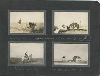 Keywords: 1910s world war i worldwari royal flying corps royalflyingcorps royal air force royalairforce texas horses architecture window picture frame "a day on a Texas ranch where one of our planes landed" "Wike as a cowboy" "the Ranchers Home" Photographs taken by Harry McBride (1893-1969), who worked as a rigger in the Royal Flying Corps and Royal Air Force during the First World War. He was stationed at Camp Mohawk near Deseronto, Ontario, and also at Camp Taliaferro near Fort Worth, Texas. Scanned images donated to the Archives by Dan McBride, Harry's grandson. "a day on a Texas ranch where one of our planes landed" "Wike as a cowboy" "the Ranchers Home" Photographs taken by Harry McBride (1893-1969), who worked as a rigger in the Royal Flying Corps and Royal Air Force during the First World War. He was stationed at Camp Mohawk near Deseronto, Ontario, and also at Camp Taliaferro near Fort Worth, Texas. Scanned images donated to the Archives by Dan McBride, Harry's grandson. |